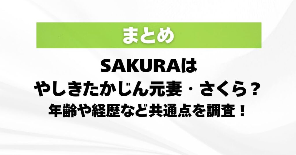 最近、SAKURAさんの名前がSNSで広がっています。 動画を見た流れで「この人って、やしきたかじんさんの元妻・さくらさんなのでは」と気になった人もいたようです。 ただ、いま出ている情報を見るかぎり、同じ人物だとはっきり分かるところまでは出ていませ... -
